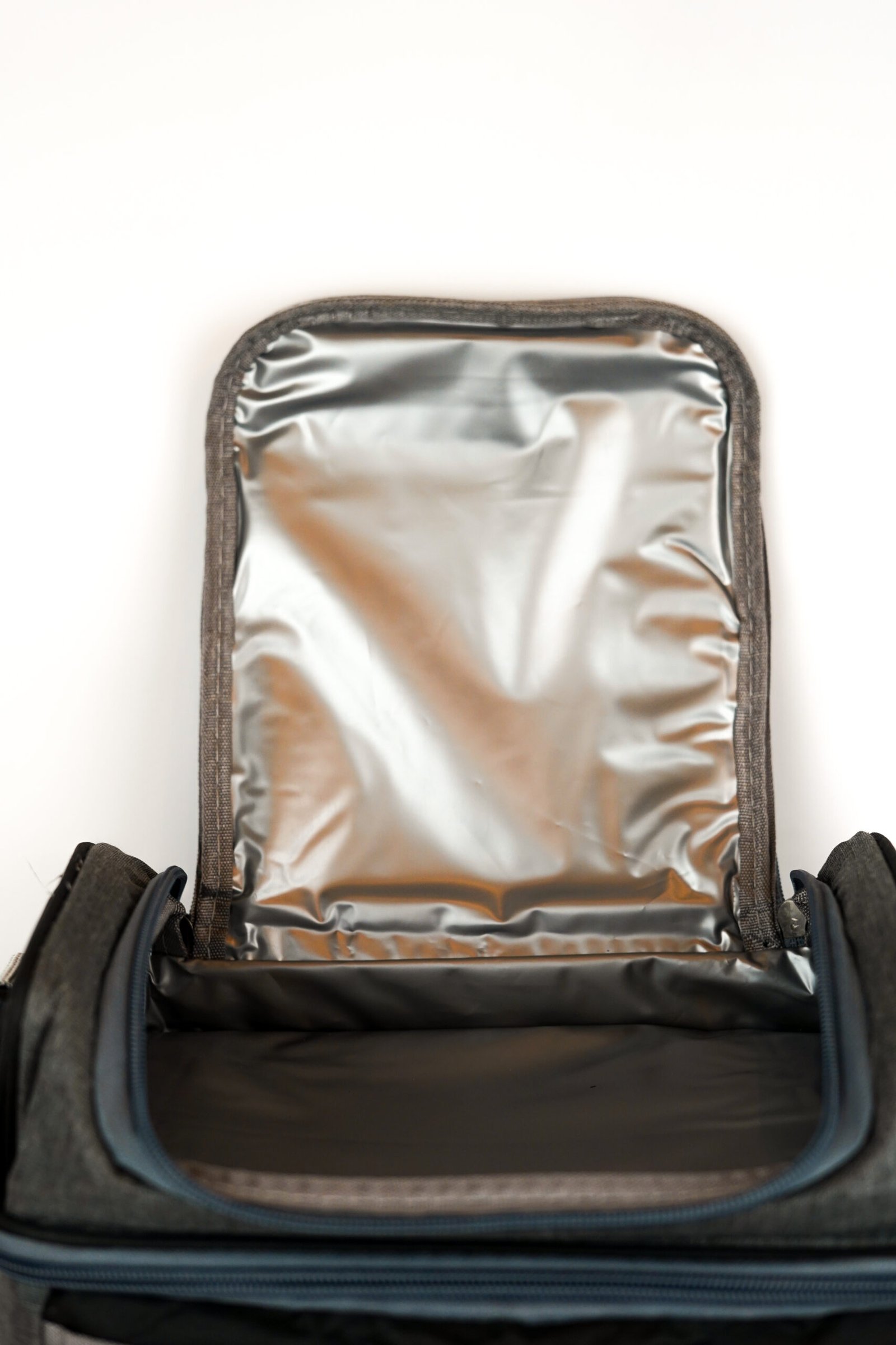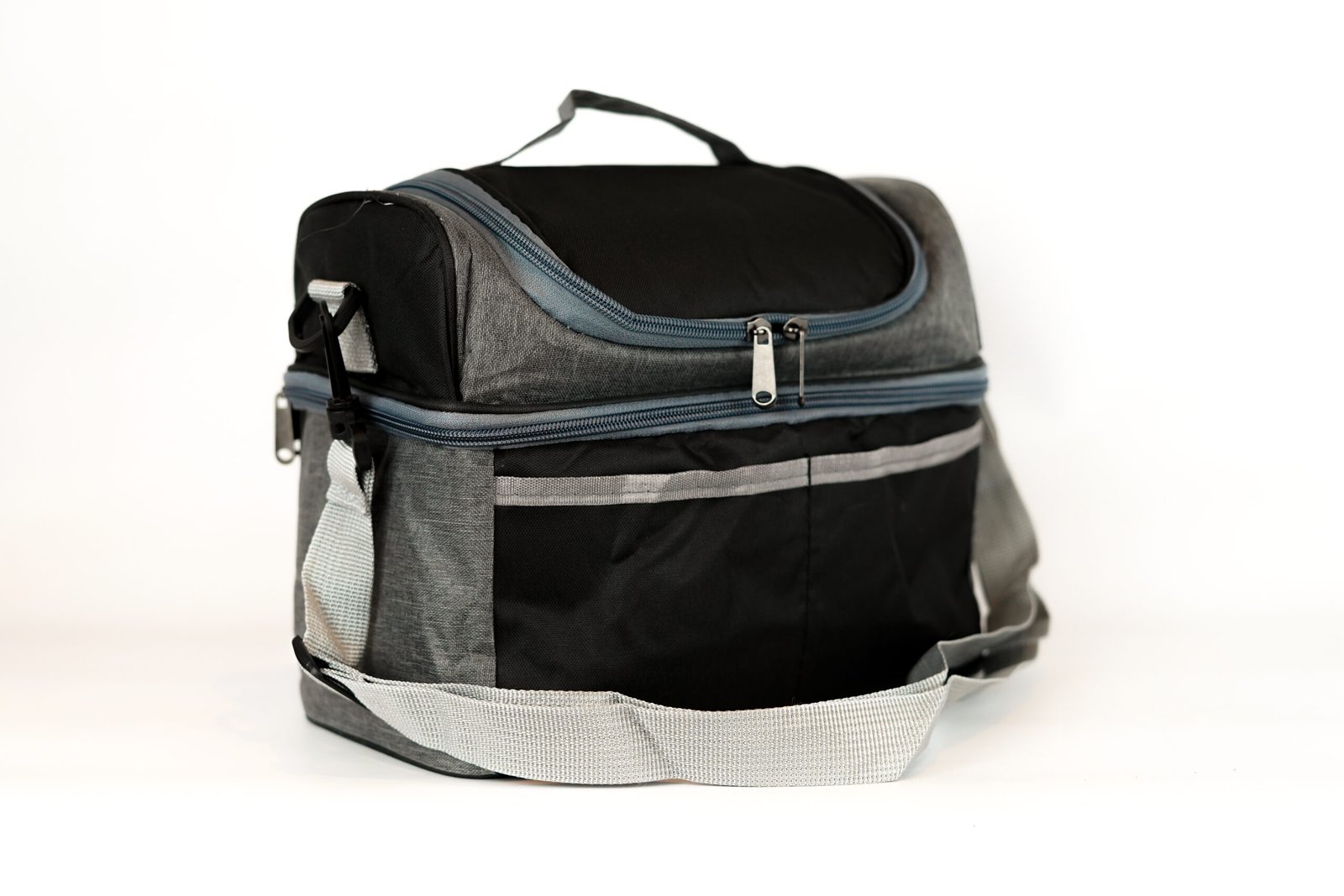 BOLSO TERMICO COMBINADO NEGRO Y GRIS CON DOBLE COMPARTIMIENTO